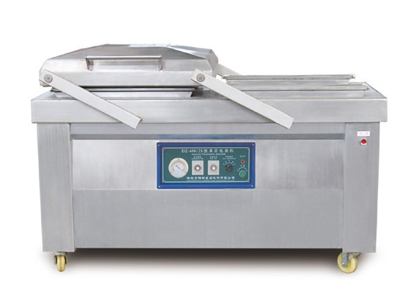 食品真空包裝機將食品裝入包裝袋,抽出包裝袋內的空氣,達到預定真空度后,完成封口工序。在食品行業,真空包裝應用非常普遍,各種熟制品如雞腿、火腿、香腸、烤魚片、牛肉干等;腌制品如各種醬菜以及豆制品、果脯等各種各樣需要保鮮的食品越來越多地采用真空包裝。經過真空包裝的食品保鮮期長,大大延長食品的保質期。